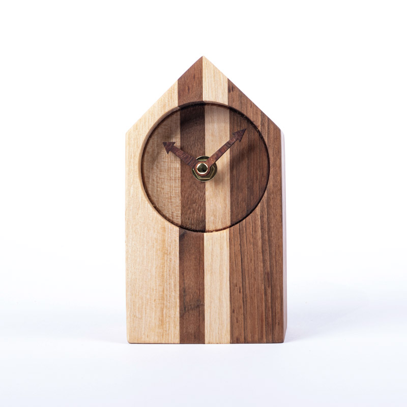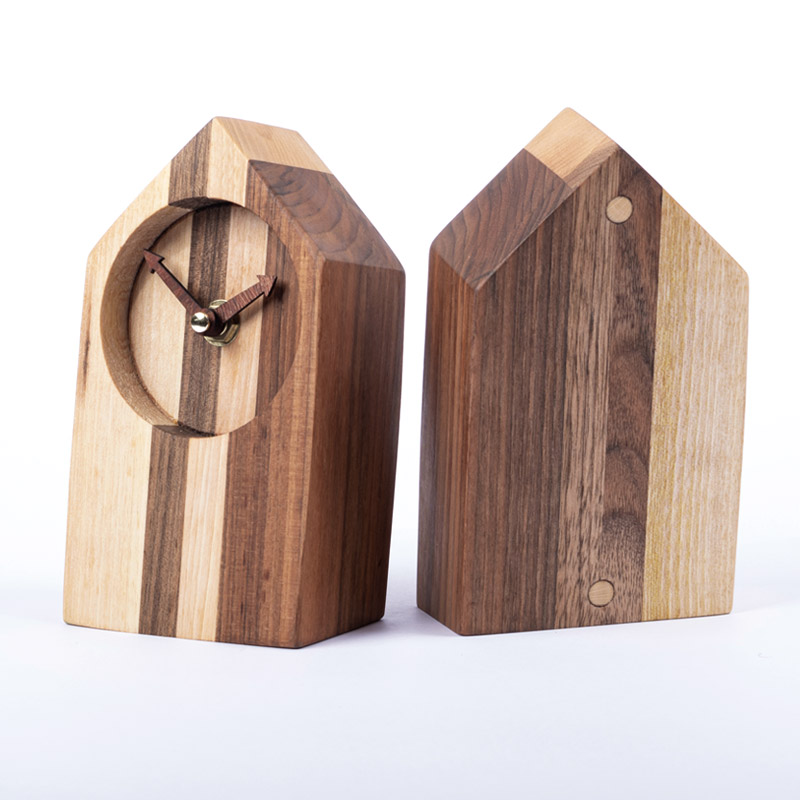 ساعت چوبی رومیزی ایستاده ترکیبی با موتوری آرامگرد،با تلفیق دو رنگ تیره و نیمه روشن چوبی، ترکیبی بسیار خوش نقش با القای حسی لذتبخش چوب، یک اثر زیبا و دکوری مناسب برای استفاده بر روی انواع  قفسه های دکوری و کتابخانه، میز تحریر یا هر فضای دلخواه دیگر بوده که با کیفیتی بالا و سطحی صیقلی تولید شده و زیبایی بخش محیط زندگی شما می‌باشد. نوع رنگ و نقش چوب در سفارشات عمده بنا به درخواست مشتریان قابل تغییر بوده و امکان هک لوگو و یا نام برند بر روی قسمت های مختلف چوب وجود دارد.